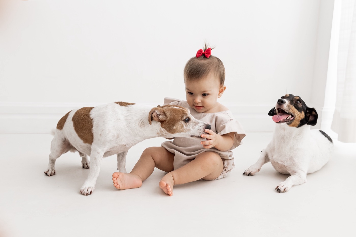 Além dos ensaios de família com pet, também realizamos ensaios newborn com pet (recém-nascido com o cachorro ou gato da família) e ensaios de gestante com pet — sempre com total segurança e supervisão profissional.